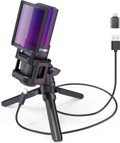 میکروفون یو اس بی zealsound، میکروفون بازی RGB برای PC Mac Phone، PS4&5، میکروفن خازنی Cardioid با آداپتور USB-C، بیصدا کردن سریع، پایه سهپایه، فیلتر پاپ برای...- تهران فوری۵٬۰۶۳٬۸۱۱ تومان