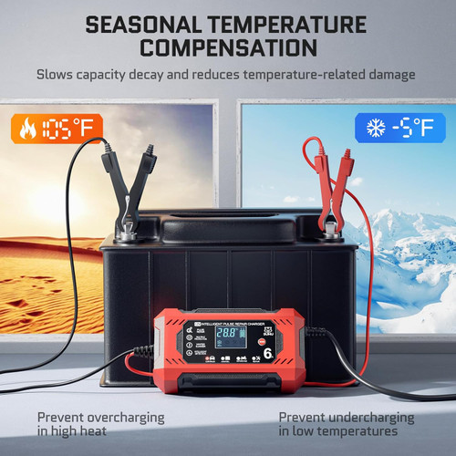 " شارژر باتری SUHU 12V/6A - 4 حالت شارژ، نگهدارنده باتری و تعمیر پالس برای باتریهای سرب-اسید "۳٬۶۰۰٬۰۰۰ 2%