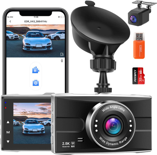 دوربین ثبت وقایع وای فای 2.5K جلو و عقب POYBPCY، دوربین 1440P Quad HD+1080P FHD Dual Dash برای خودروهایی با دید در شب فوق العاده، حالت پارک، کارت SD 32G، صفحه نمایش 3 اینچی IPS، زاویه باز 170 درجه، سنسور G، پشتیبانی از حداکثر 128 گیگابایت- تهران فوری۵٬۹۸۳٬۰۱۰ تومان