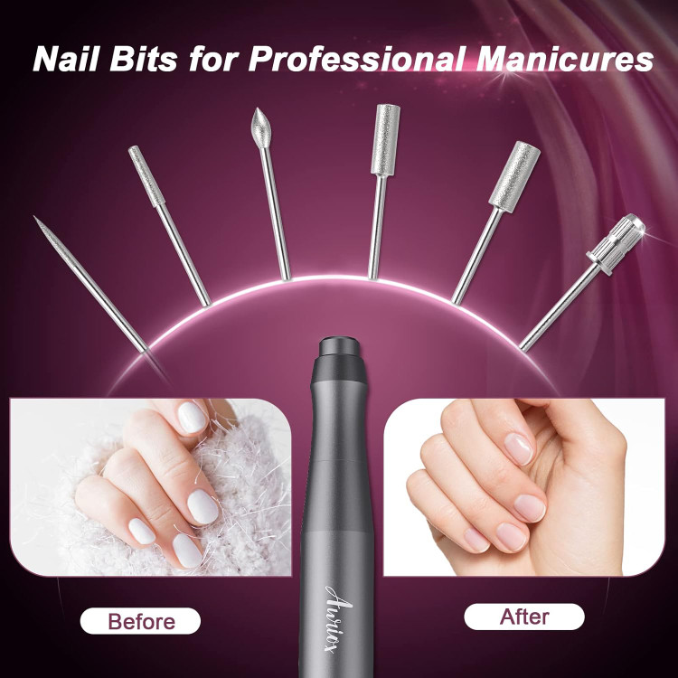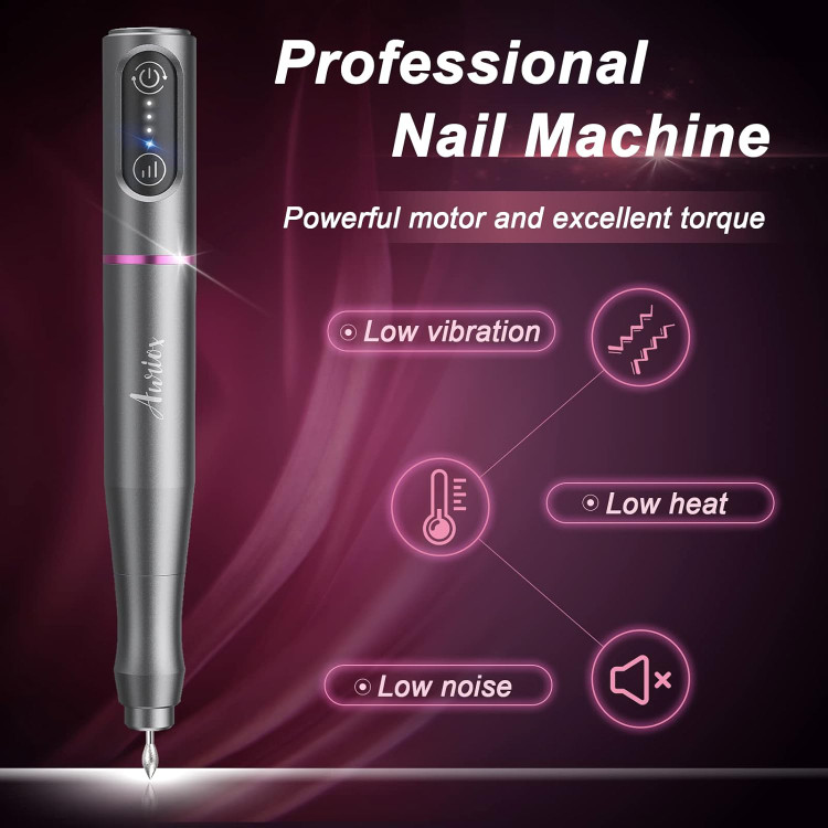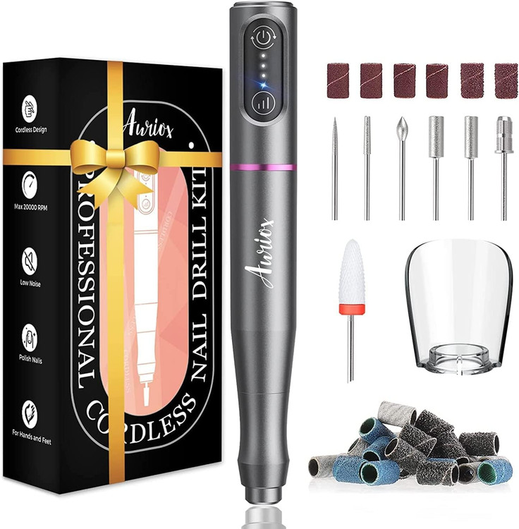 دستگاه پدیکور و مانیکور سوهان ناخن بیسیم Auriox، سوهان ناخن برقی قابل شارژ حرفهای قابل حمل با نوک سرامیکی، کیت مانیکور و پدیکور برای ناخنهای اکریلیک