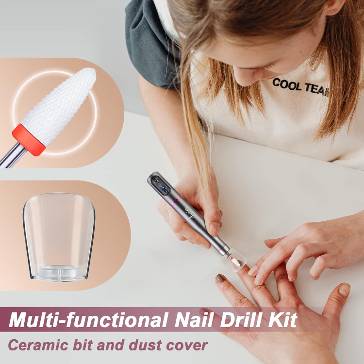 کیت دریل ناخن حرفهای چند منظوره - همراه با سوهان ناخن برقی قدرتمند، ۱ سر سرامیکی، ۶ نوع سر مته فلزی و ۳۶ عدد نوار شنی دانه درشت ۴ رنگ، که میتواند نیازهای مختلف مانیکور و پدیکور را برآورده کند: ناخنهای اکریلیک، ناخنهای ژلهای، ناخنهای پودری، کوتیکول، پوست مرده و ناخنهای ضخیم طبیعی پا.
