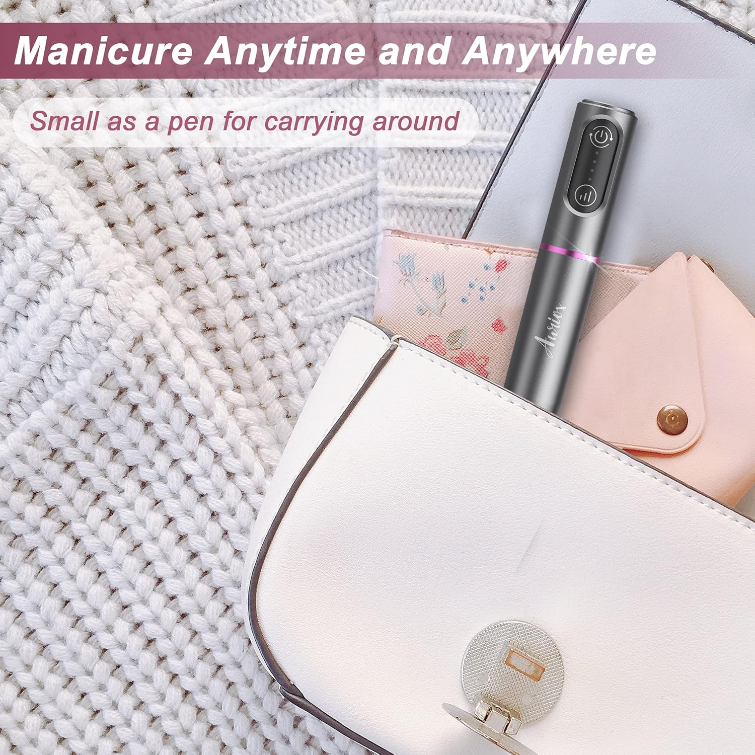 دستگاه پدیکور و مانیکور سوهان ناخن بیسیم Auriox، سوهان ناخن برقی قابل شارژ حرفهای قابل حمل با نوک سرامیکی، کیت مانیکور و پدیکور برای ناخنهای اکریلیک
