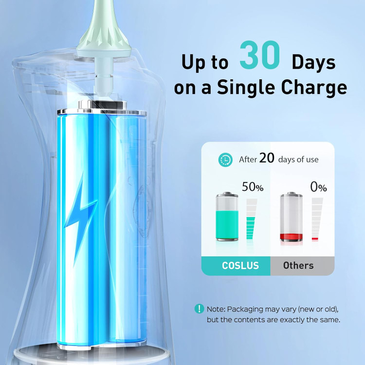 30 روز افزایش عمر باتری برای استفاده در حال حرکت: دستگاه نخ دندان قابل حمل بیسیم دارای باتری قدرتمندی است که دو برابر مدلهای دیگر دوام میآورد. تنها با 3 ساعت شارژ، میتوانید تا 30 روز از آن استفاده کنید. طراحی جمع و جور و سبک آن، آن را برای استفاده در خانه یا در حال حرکت ایدهآل میکند و با یک کابل USB (آداپتور شامل نمیشود) برای شارژ آسان ارائه میشود.
