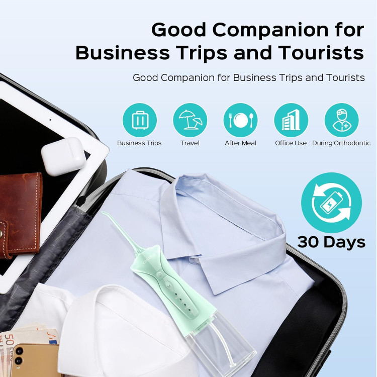 ضد آب IPX7 و 3 سال دوام: این دستگاه نخ دندان قابل حمل بیسیم با استاندارد ضد آب IPX7 ساخته شده است که امکان تمیز کردن آسان در حمام را فراهم میکند. موتور ارتقا یافته، جریان آب دوگانه را برای تمیز کردن و افزایش دوام فراهم میکند و تا 3 سال دوام میآورد.