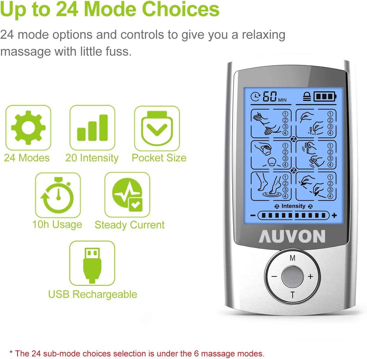 دستگاه TENS ارتقا یافته ۲۴ حالته. این دستگاه TENS دارای ۲۰ سطح شدت، ۲۴ حالت از پیش برنامهریزی شده و یک تایمر انعطافپذیر (۱۰-۶۰ دقیقه) است. باتری لیتیومی قابل شارژ داخلی میتواند تا ۱۰ ساعت استفاده را برای شما پشتیبانی کند.