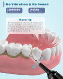 کارایی بالاتر و نتایج فوری: این پاککننده جرم دندان میتواند به راحتی و بدون زحمت پلاکهای سخت و جرمهای انباشته شده را از بین ببرد و لکهها را از روی دندانها پاک کند و دندانهای شما را تازه، تمیز و براق جلوه دهد. در همین حال، برای کاهش آسیب به دندانها و حفظ سلامت لثهها، پاککننده دندان ما از فناوری ارتعاش با فرکانس بالا تا 40 کیلوهرتز استفاده میکند و حتی به 2 میلیون لرزش در دقیقه نیز میرسد.