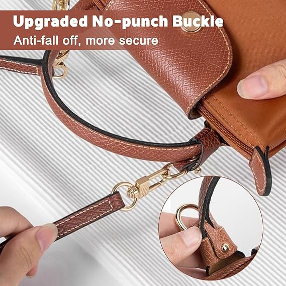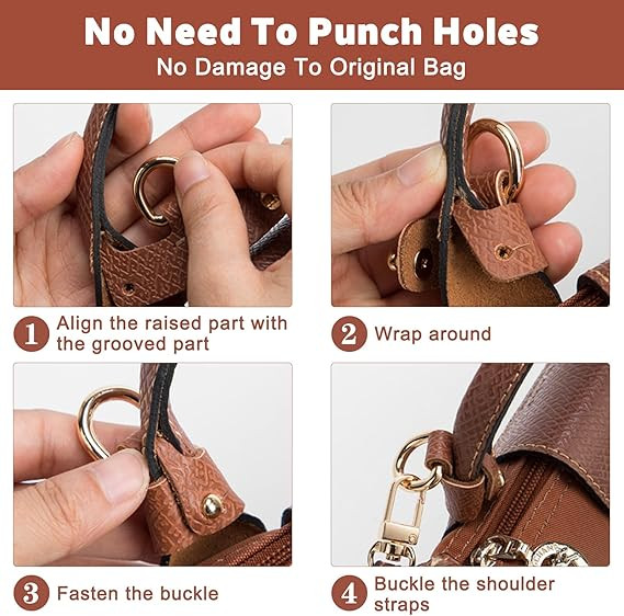 【نصب و جداسازی آسان】 کیف دستی را اصلاح کنید، نیازی به سوراخ کردن نیست. ۱. قسمت برجسته سگک اصلاح چرمی با موقعیت شیار تراز شده است. ۲. یک حلقه در پایین بند ایجاد کنید. ۳. سگک را ببندید. ۴. بند شانه را ببندید و نصب کامل میشود.