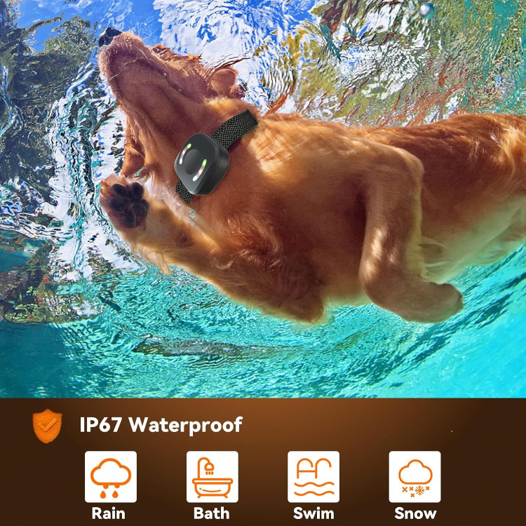 قلاده ضد آب: قلاده IP67 ضد آب است، حتی اگر سگ قلاده را بپوشد، برای سگ ها بسیار راحت است که آزادانه در استخر، برف، دریا یا باران بازی کنند. توجه: کنترل از راه دور ضد آب نیست.