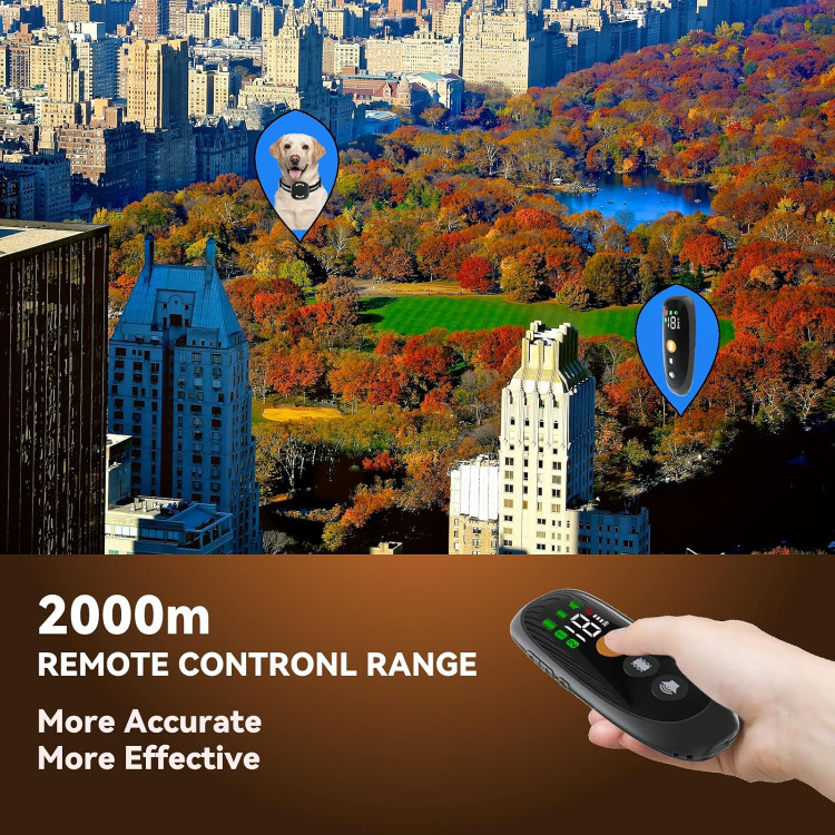 برد 2000 متری و قفل امنیتی: برد تا 2000 متر به شما امکان می دهد تا سگ های خود را به راحتی در باغ، ساحل، پارک آموزش دهید. قفل امنیتی را می توان برای جلوگیری از عملکرد نادرست قفل کرد و به شما امکان می دهد کنترل از راه دور را با خیال راحت حمل کنید.