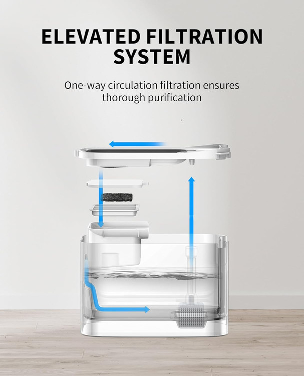 آب تازه در حالتهای مختلف: حالت جریان مداوم یا حالت متناوب را بر اساس ترجیح حیوان خانگی تنظیم کنید، فیلتر چند لایه از یک سیستم فیلتراسیون چرخشی یک طرفه استفاده میکند که مو، رسوب، خاک و غیره را فیلتر میکند و یک تجربه آشامیدنی بهداشتی و خالص را برای حیوانات خانگی فراهم میکند.