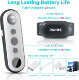 【عمر باتری طولانی مدت】 این قلاده الکترونیکی از فناوری باتری لیتیومی استفاده میکند که عمر باتری طولانی مدتی را فراهم میکند. برای شارژ اولیه، حتماً آنها را به مدت 4 ساعت شارژ کنید. شارژهای بعدی فقط 2-3 ساعت طول میکشد. در صورت استفاده، گیرنده را میتوان بیش از 11 روز استفاده کرد، در حالی که باتری کنترل از راه دور بیش از 27 روز دوام میآورد.
