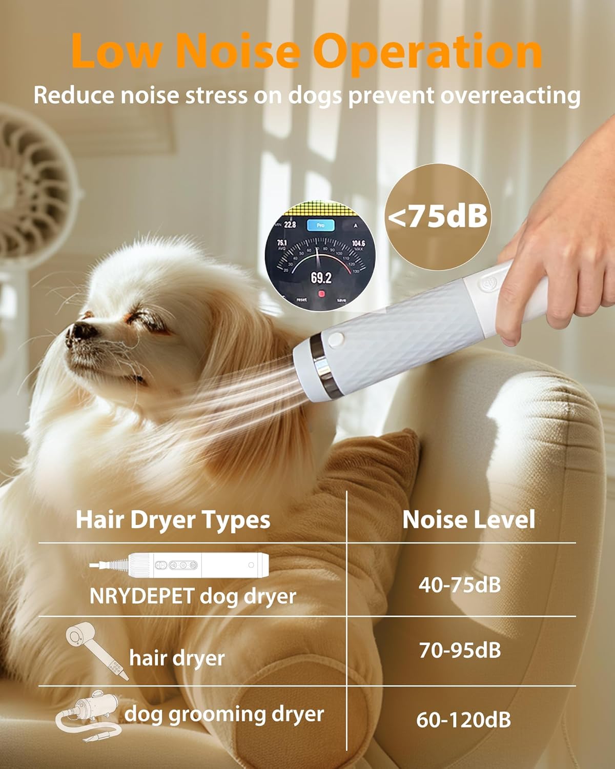 قدرتمند و همهکاره: سشوار سگ NRYDEPET با موتور بدون جاروبک DC با سرعت بالا و سرعت ۱۱۰۰۰۰ دور در دقیقه، خشک کردن کارآمدی را برای انواع پوشش مو ارائه میدهد. ۵۰٪ زمان دمیدن را کاهش میدهد. مناسب برای آرایش خانگی و حرفهای.