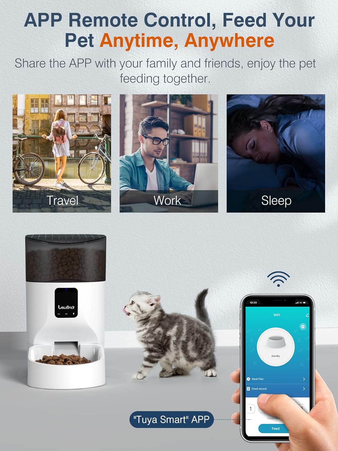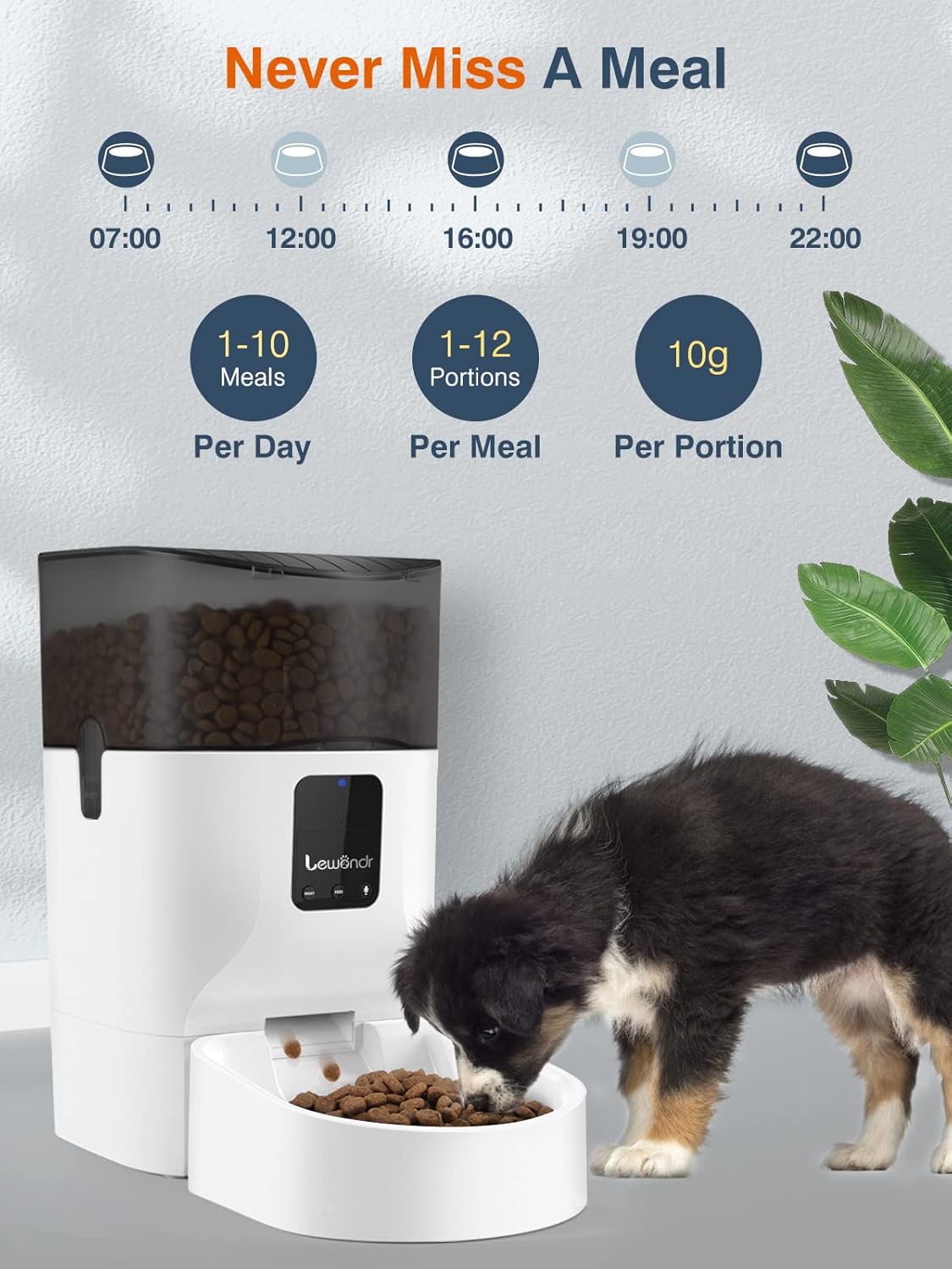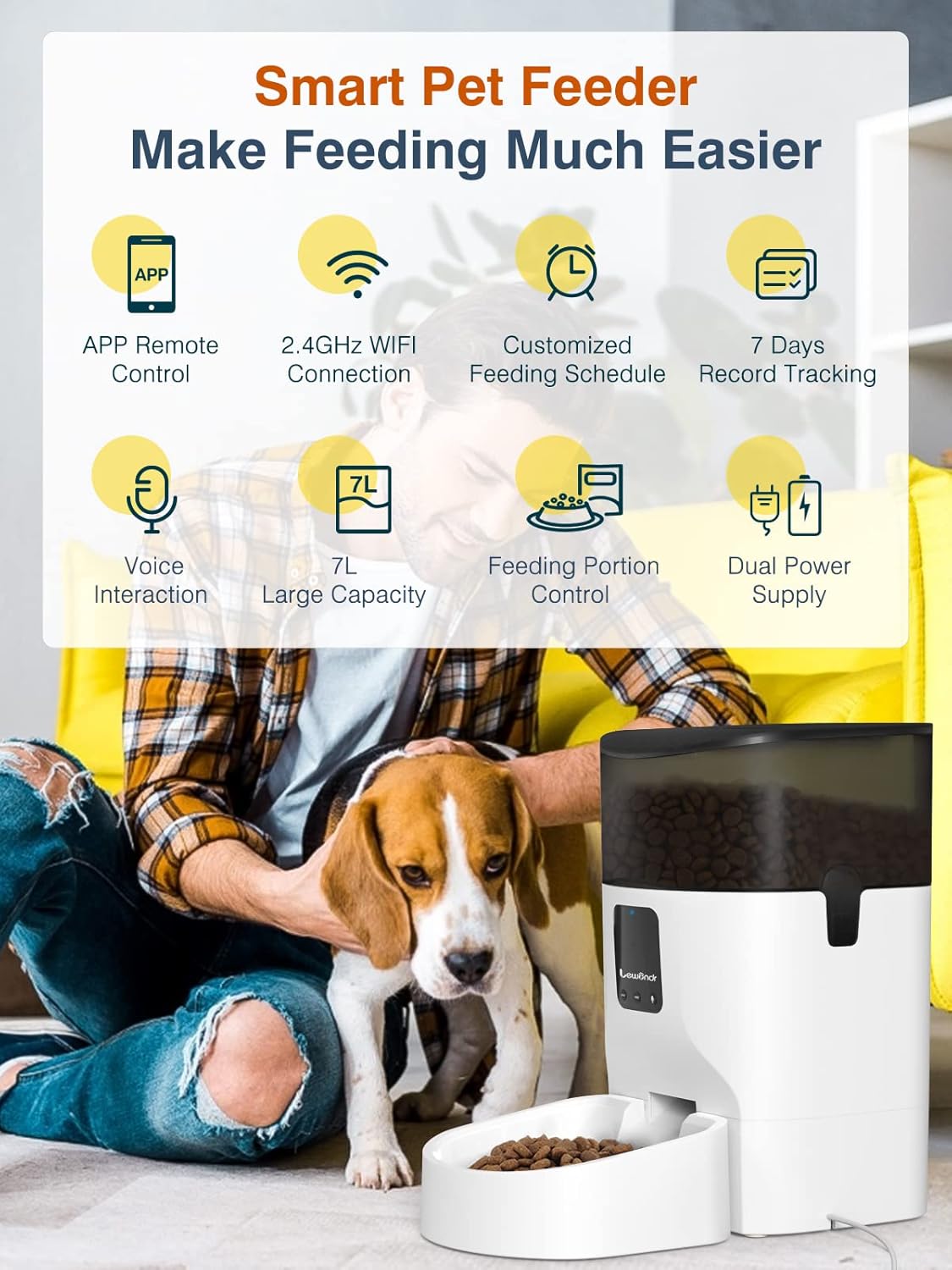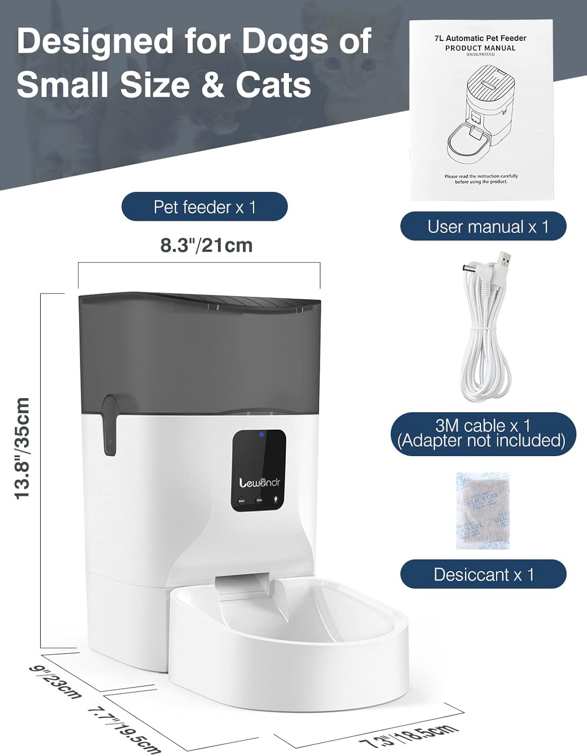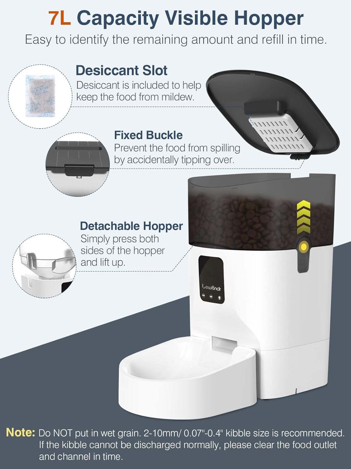 Lewondr Automatic Cat Feeder, 7L 2.4G WiFi Dog Feeder Pet Food Dispenser with 10s Voice Recorder, Timed Feeder with Locking Buckle Lid, 1-10 Meals and 0-12 Portion Daily for Small/Medium Pets