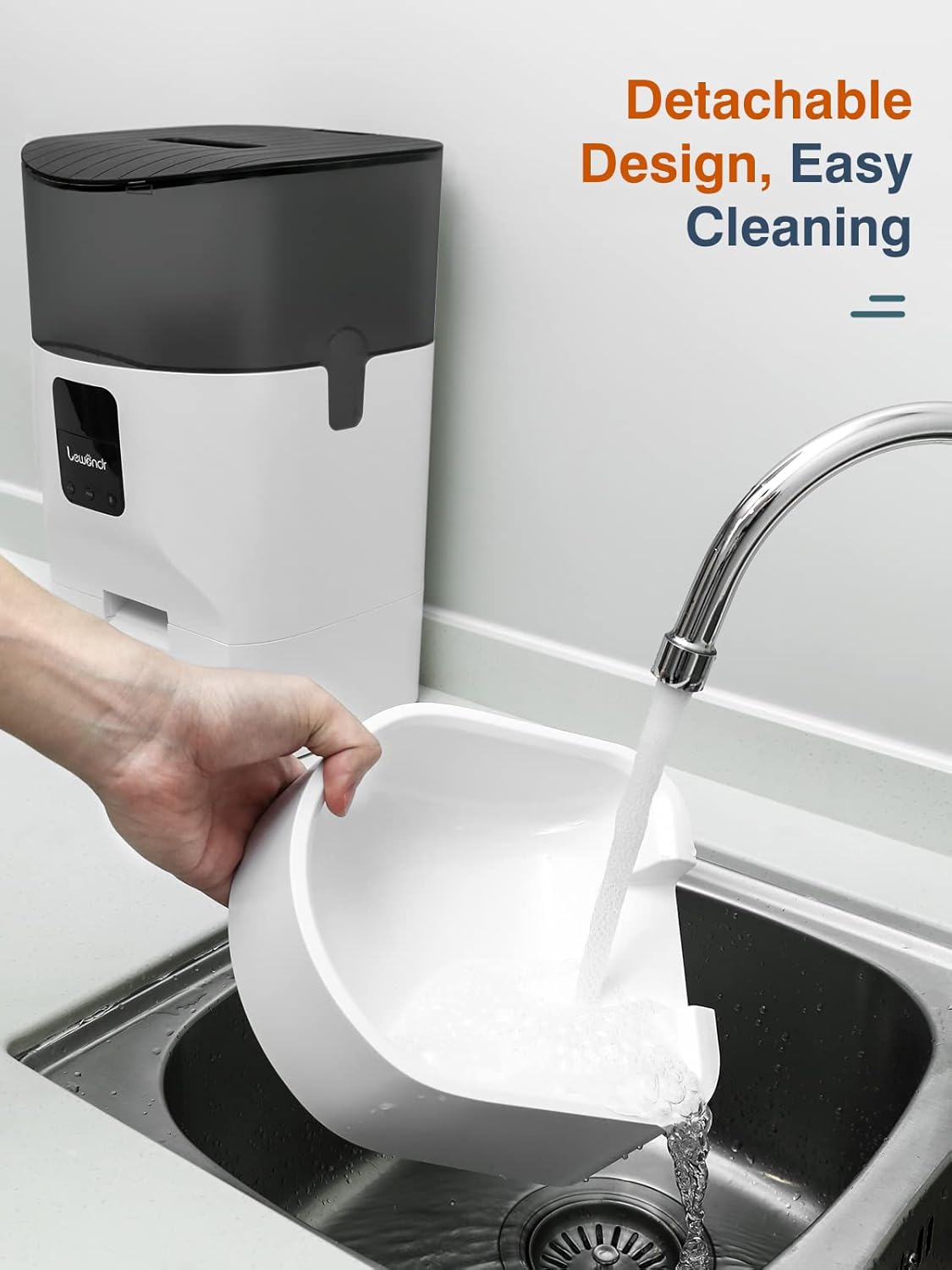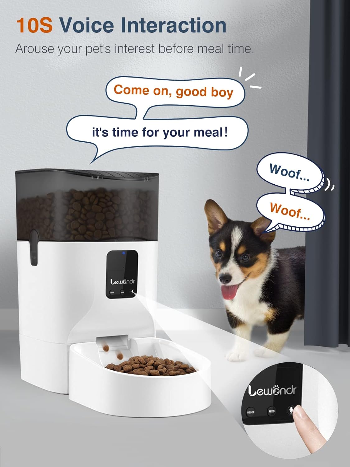 ظرف غذای اتوماتیک گربه Lewondr، ظرف غذای اتوماتیک سگ 7 لیتری 2.4 گیگاهرتزی وای فای، پخش کننده غذای حیوانات خانگی با ضبط صدا 10 ثانیه، غذادهنده زمان دار با درب قفل شونده، 1-10 وعده غذایی و 0-12 وعده غذایی روزانه برای حیوانات خانگی کوچک/متوسط --- آلمانی