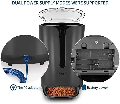 دو نوع تغذیه برقی: دستگاه پخش غذای حیوان خانگی ما میتواند از آداپتور برق همراه شارژر یا ۳ باتری سایز D (شامل نمیشود) استفاده کند تا از تغذیه حیوان خانگی شما حتی در صورت قطع برق اطمینان حاصل شود.