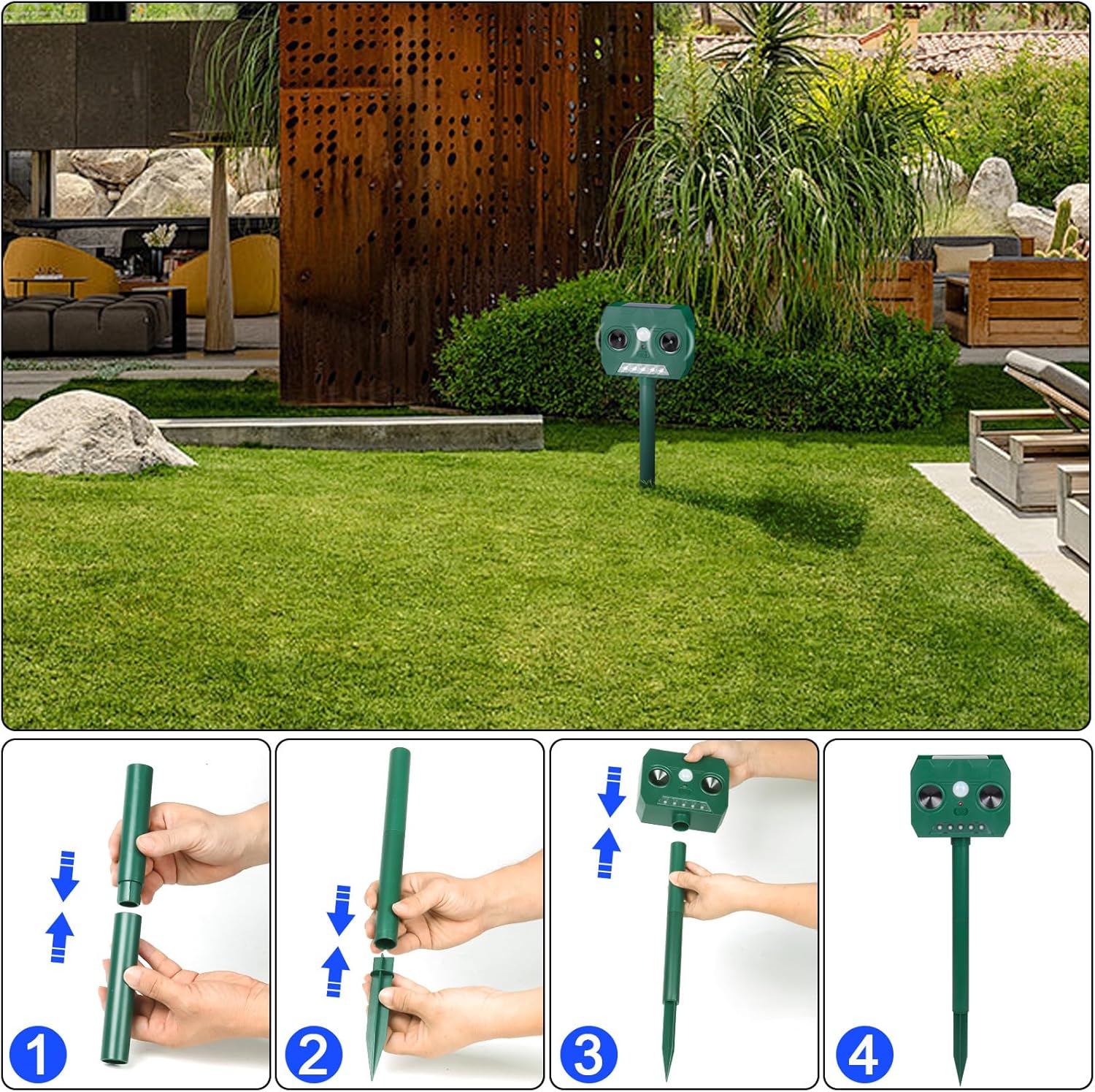 این دستگاه دفع حیوانات قابل حمل و جمع و جور، استفاده آسانی دارد. کافیست دستگاه دفع حیوانات اولتراسونیک خورشیدی را در خاک مناسب قرار دهید و به محض تماس نور چراغها با منطقه، دستگاه شروع به کار میکند. این دستگاه بدون نیاز به تعمیر و نگهداری کار میکند و برای کمپینگ در فضای باز و دور نگه داشتن حیوانات وحشی از مزاحمت، ایدهآل است.