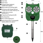 دور کننده حیوانات -- دفع کننده حیوانات اولتراسونیک، دارای سنسور PIR ضد آب و انرژی خورشیدی برای فضای باز، دارای قابلیت فعال شدن با حرکت و نور و صدای چشمک زن LED، به طور موثری گربه، سگ، روباه و پرندگان را فراری میدهد.