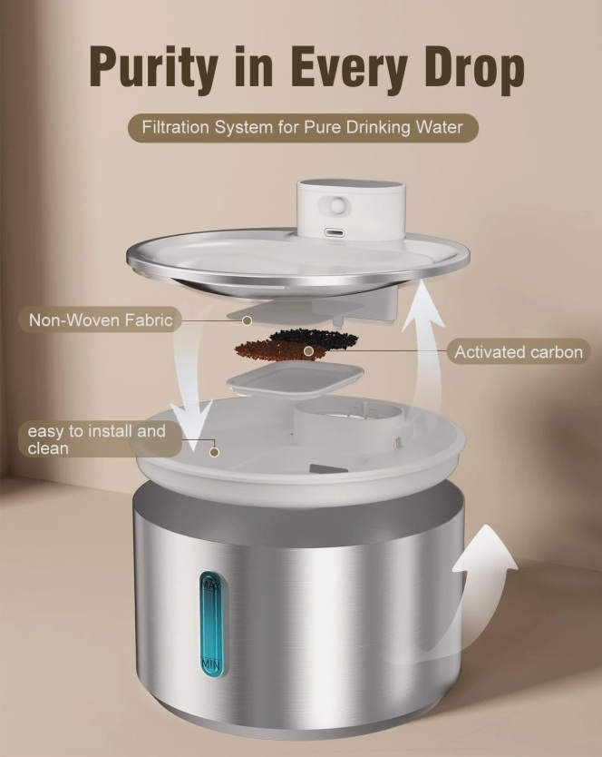 QANYI Stainless Steel Cat Waterer, 140 oz/4 L, Wireless Cat Waterer