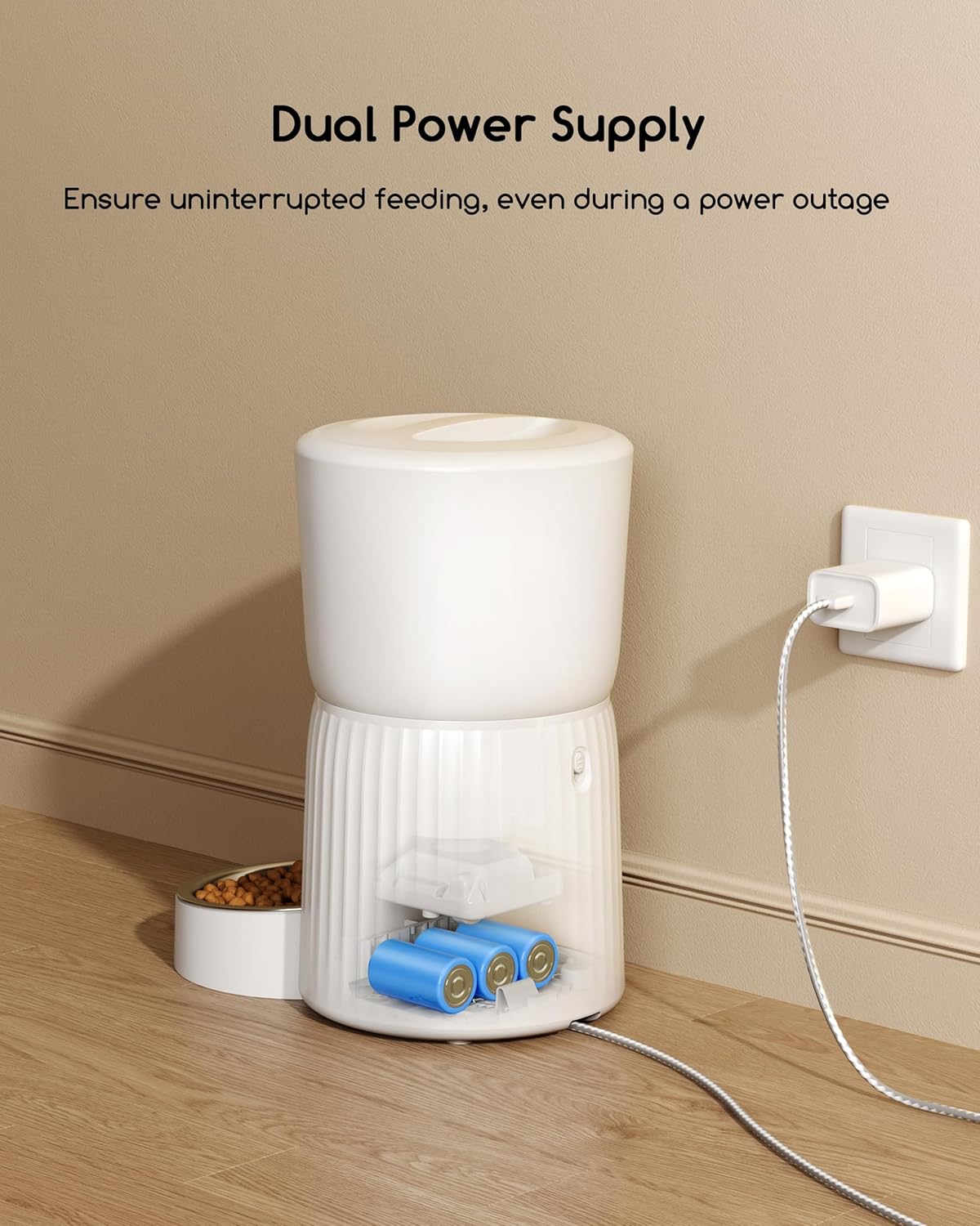 【منبع تغذیه دوگانه】: این ظرف غذای اتوماتیک حیوانات خانگی گزینههای منبع تغذیه دوگانه را ارائه میدهد و به آنها امکان میدهد تا با آداپتور DC یا ۳ باتری قلیایی D تغذیه شوند. این تضمین میکند که حیوانات خانگی حتی در هنگام قطع برق گرسنه نخواهند ماند.