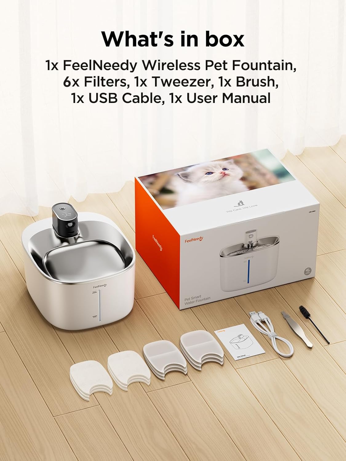 فوقالعاده بیصدا: شما و تولههایتان حتی اگر آبخوری گربه FeelNeedy درست کنار تخت شما باشد، به راحتی خواهید خوابید. پمپ پیشرفته با صدای بسیار کم ۳۵ دسیبل کار میکند و تقریباً بیصدا است.