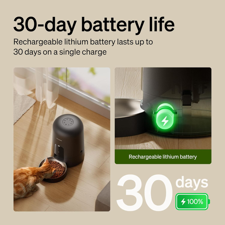کنترل آسان برنامه: تنظیم برنامه غذایی حیوان خانگی شما باید به سادگی تنظیم زنگ هشدار روی تلفن شما باشد. با برنامه PETLIBRO، میتوانید به راحتی از هر کجا برای همراه پشمالوی خود غذا برنامهریزی کنید. میتوانید تا 10 وعده غذایی در روز را سفارشی کنید که هر وعده غذایی بین 1 تا 16 وعده غذایی خشک ارائه میدهد و مطمئن شوید که گربه شما دقیقاً مقدار غذای مورد نیاز خود را دریافت میکند. فقط یک هشدار، این غذادهنده گربه زمانبندیشده فقط با وایفای ۲.۴ گیگاهرتز کار میکند.