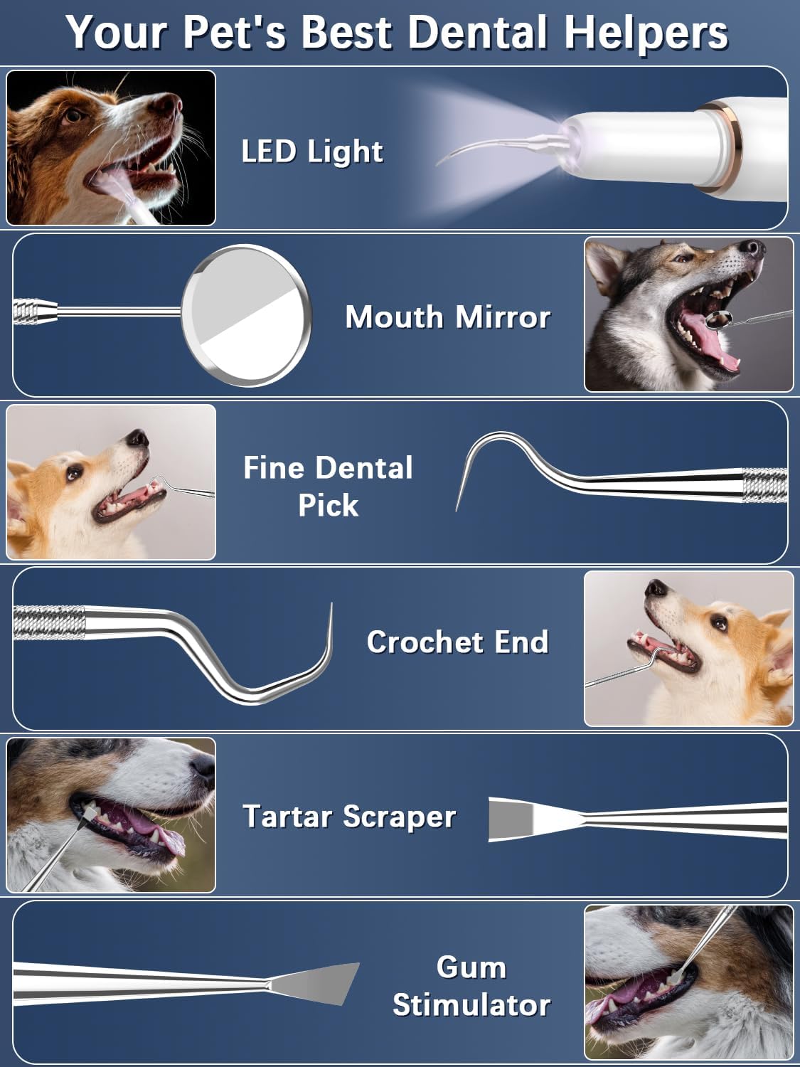【حذف موثر پلاک】 از بین ۵ حالت مختلف تمیز کردن، یکی را انتخاب کنید تا پلاک را به طور موثر از بین ببرید و سلامت دهان و دندان حیوان خانگی خود را بهبود بخشید. با این تمیزکننده دندان حیوان خانگی، با لثههای متورم و بیاشتهایی خداحافظی کنید.