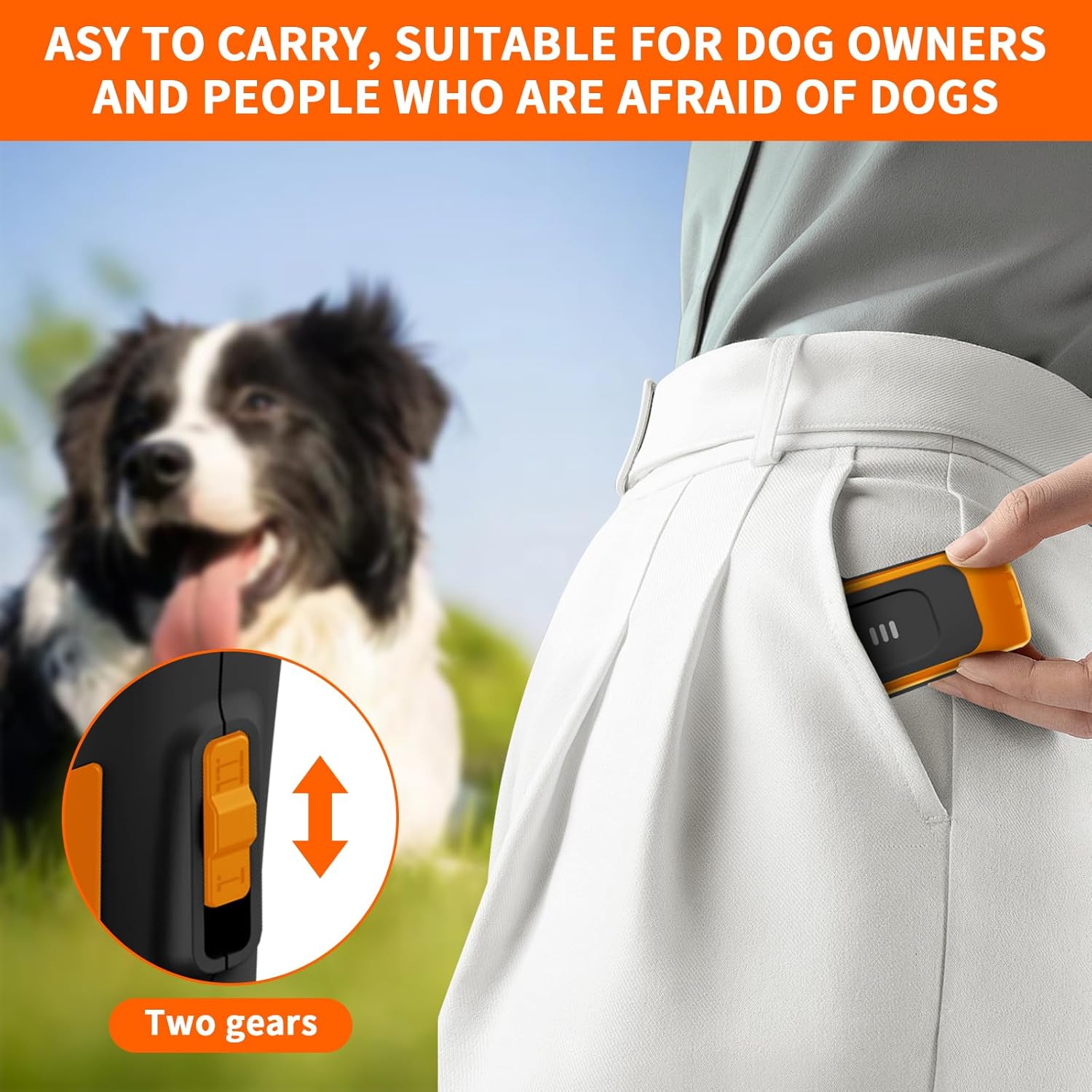 🐶【دستگاه متوقفکننده پارس سگ برای داخل/خارج از منزل】: بالای پارس سگ به لطف طراحی ارگونومیک آن، از دست شما لیز نمیخورد. این مربی سگ کوچک، سبک و حمل آن آسان است. دستگاه ضد پارس سگ به راحتی در جیب شما جای میگیرد و میتوانید هنگام دویدن یا پیادهروی برای ترساندن سگهای بدرفتار در خیابان، آن را با خود ببرید. دستگاه ضد پارس سگ بدون شوک الکتریکی، بدون بوی آزاردهنده، بسیار ایمن برای سگها، هیچ آسیبی به سگها نمیرساند.