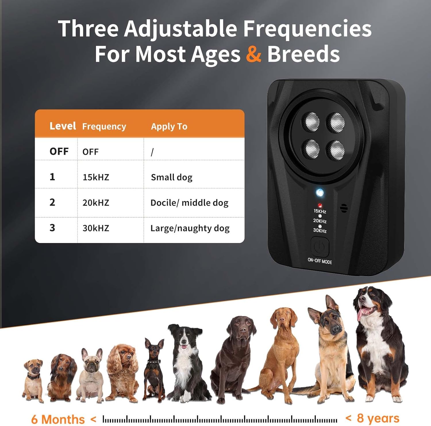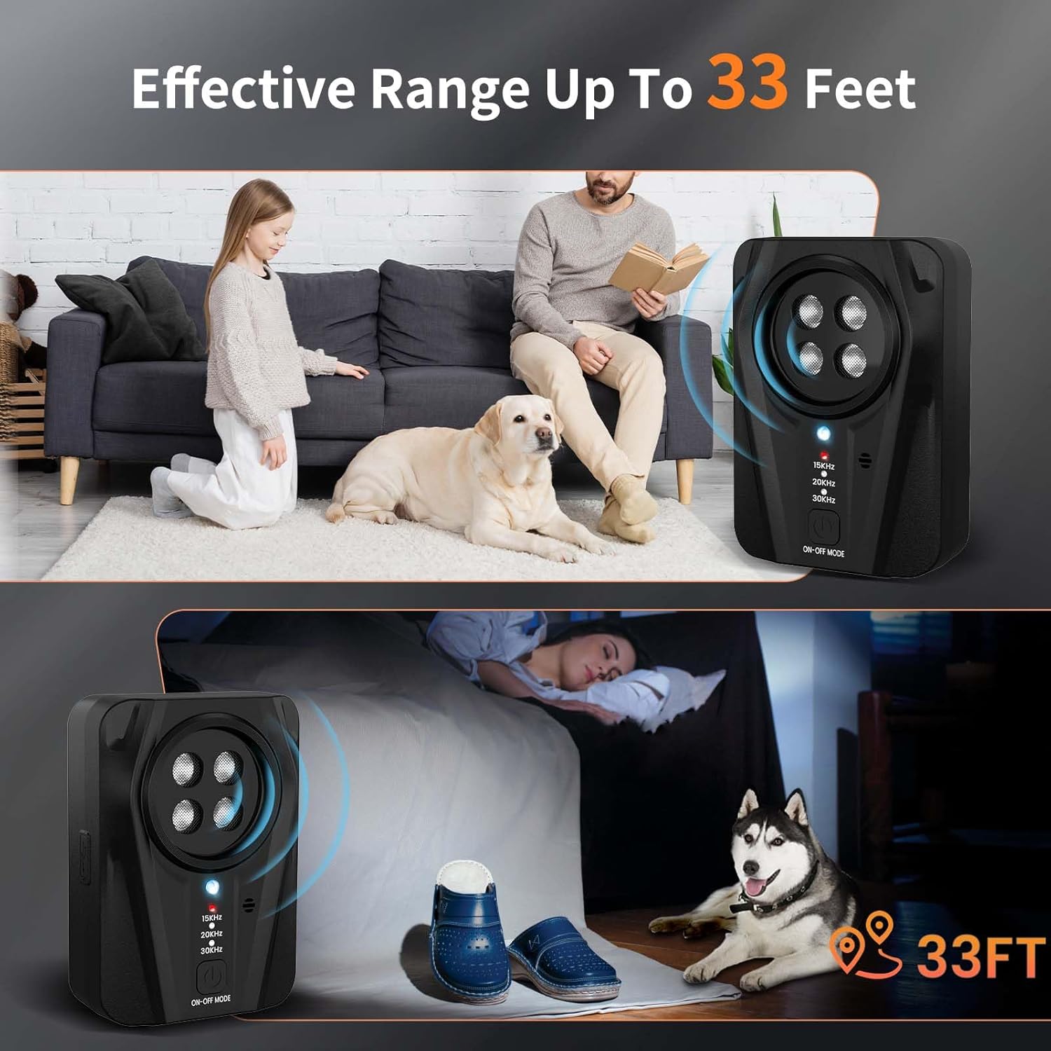 برد تا ۳۳ فوت: دستگاه خودکار ضد پارس سگ میتواند پارس سگ را از فاصله تا ۳۳ فوت تشخیص دهد و سپس با ارسال امواج فراصوت، پارس سگ شما یا سگ همسایهتان را متوقف کند و دستان شما را کاملاً آزاد بگذارد. این دستگاه آموزش سگ برای سگهای بین ۶ ماه تا ۸ سال با وزن ۵ تا ۸۰ پوند (حدود ۲.۵ تا ۳.۵ کیلوگرم) مؤثر است. بهتر است سگ خود را به مدت ۲ هفته آموزش دهید.