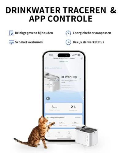 نظارت هوشمند با اپلیکیشن: اپلیکیشن PETKIT عادات نوشیدن حیوان خانگی شما را ۲۴ ساعته و ۷ روز هفته ردیابی میکند و بینشهای نوشیدن هفتگی/ماهانه ایجاد میکند و به شما این امکان را میدهد که دفعات و زمان نوشیدن حیوان خانگی خود را بهتر درک کنید. این برنامه همچنین به شما یادآوری میکند که فیلتر را تعویض کنید و مرتباً آبسردکن را تمیز کنید، بنابراین دیگر لازم نیست نگران ایمنی حیوان خانگی خود در نوشیدن باشید. علاوه بر این، میتوانید حسگر حرکت را در برنامه فعال کنید و هنگامی که حیوان خانگی شما در فاصله ۳.۹۴ اینچی نزدیک میشود، آب به مدت ۱ دقیقه به طور مداوم جریان مییابد تا آنها را به نوشیدن بیشتر تشویق کند.