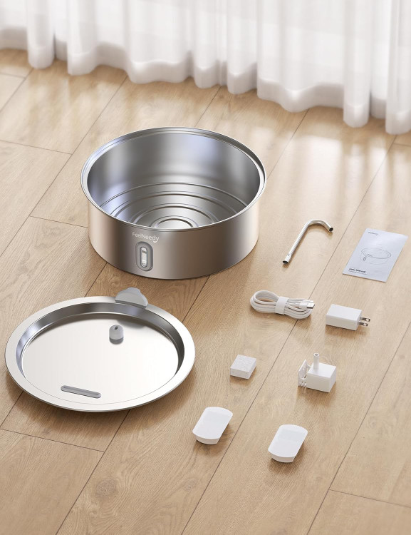 آبخوری سگ استیل ضد زنگ FEELNEEDY ---ظرفیت 7 لیتری مخصوص سگ و گربه ، چند فیلتره، تمیز کردن آسان
