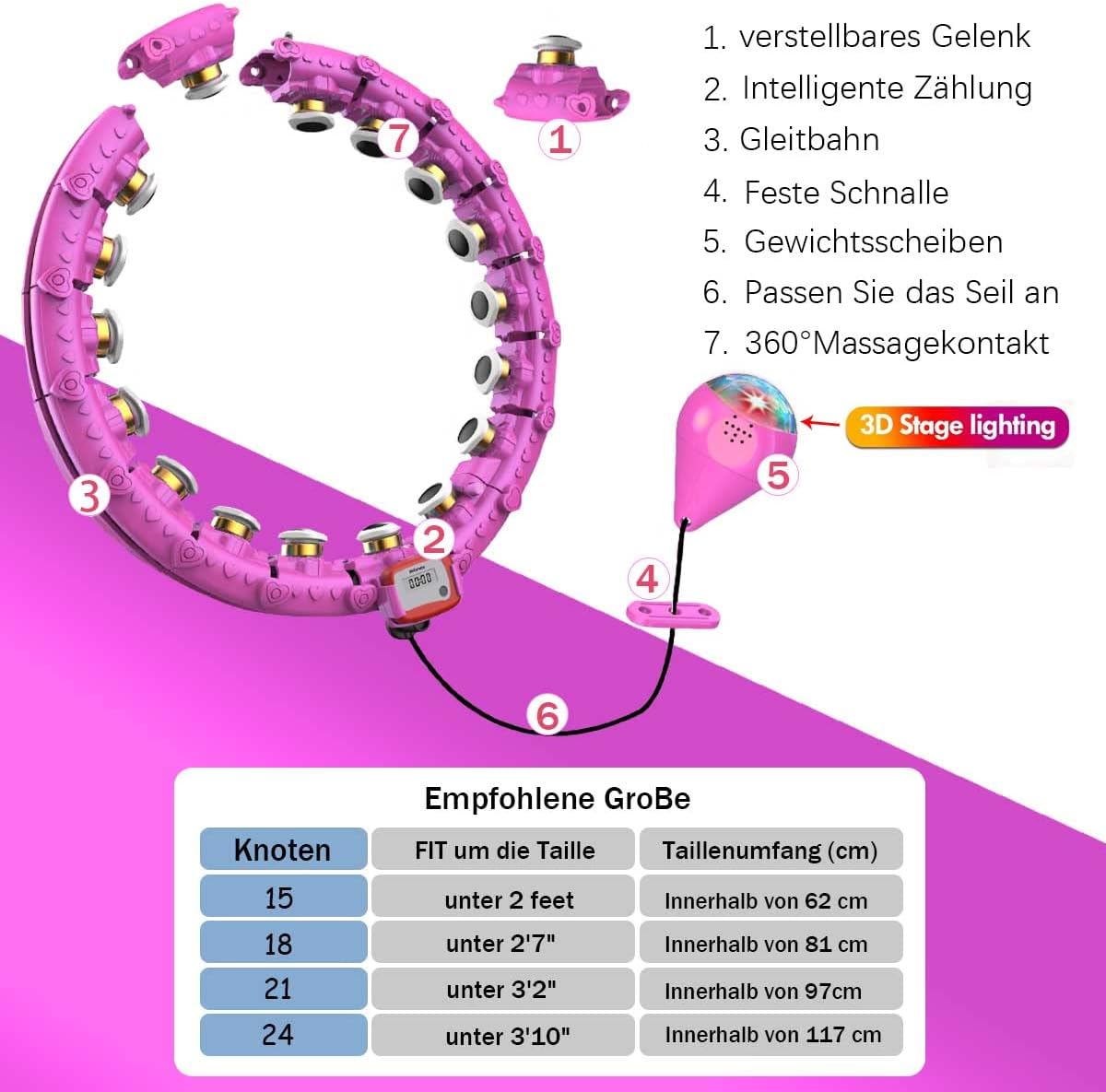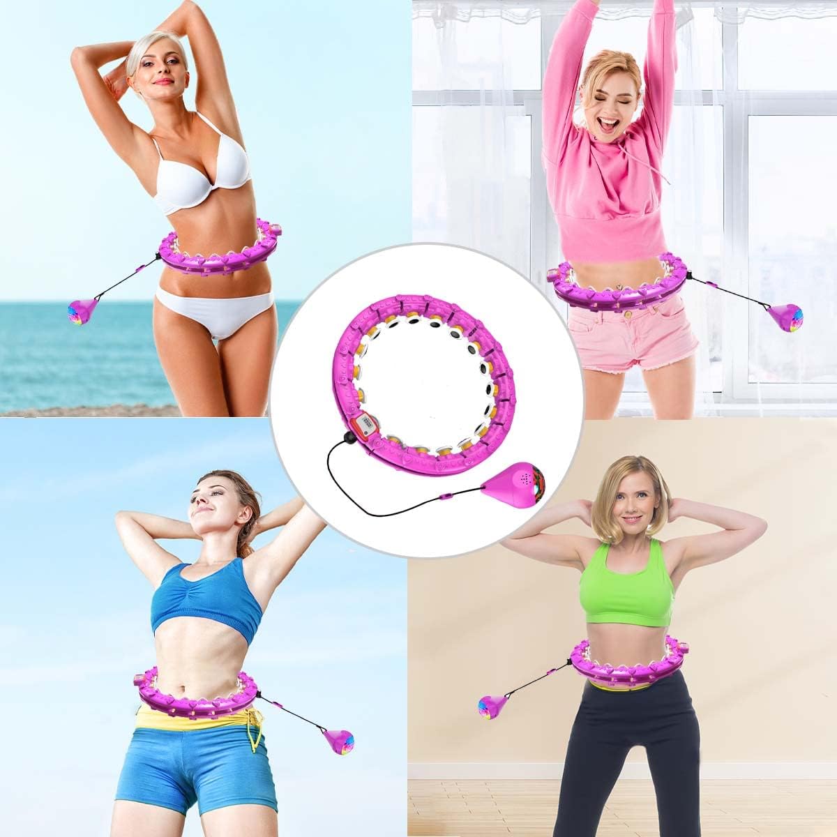 حلقه تناسب اندام هوشمند LETAO با شمارنده، حلقه هوشمند هولا برای بزرگسالان و مبتدیان، 24 حلقه هولا قابل تنظیم برای کاهش وزن و تناسب اندام س0