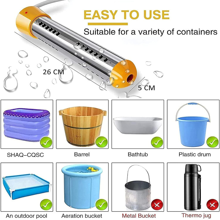 گرم کردن سریعتر آب: آبگرمکن غوطهوری ۳۰۰۰ واتی با قدرت بالا میتواند ۵ گالن آب را در عرض چند دقیقه گرم کند. در حالی که کمپینگ میتواند این آبگرمکن سطلی قابل حمل را به همراه داشته باشد و حتی در فضای باز از دوش گرفتن لذت ببرید. در زمستان سرد، دیگر نیازی نیست مدت زیادی برای آب گرم منتظر بمانید. وقتی یک آبگرمکن استخر روباز تهیه میکنید، میتوانید تنها در عرض چند دقیقه از آب گرم لذت ببرید.