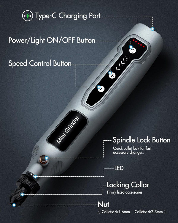نکته: این ابزار چرخشی کوچک یک ابزار چند منظوره است، بیشتر برای کارهای هنری، صنایع دستی و سایر پروژههای کوچک مناسب است، لطفاً از ابزار مینی فرز برای پروژههای بزرگ یا سنگین استفاده نکنید. در صورت بروز هرگونه مشکل، لطفاً همین حالا با ما تماس بگیرید!