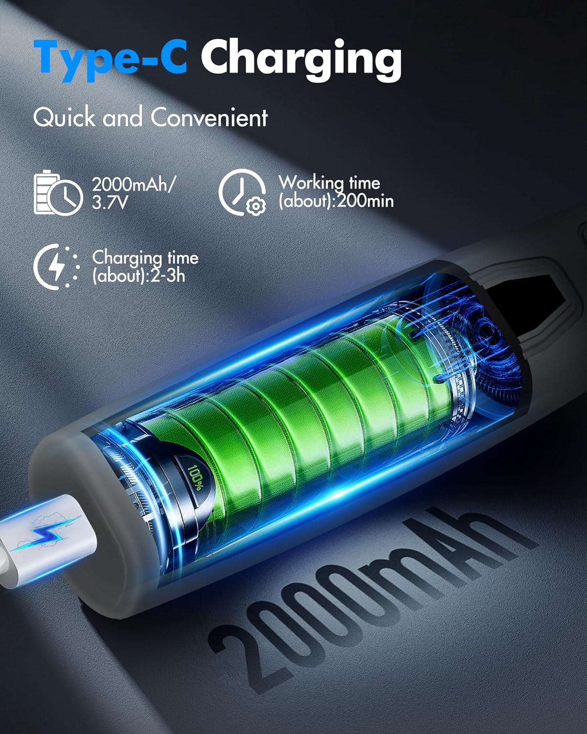 کیت ابزار چرخشی کوچک بیسیم: ابزار چندکاره قابل شارژ با پورت USB و سرعت بالای ۱۸۰۰۰ دور در دقیقه، فرز کوچک قابل حمل با چراغ LED برای حکاکی، سنگزنی، پرداخت، برش، سنبادهزنی