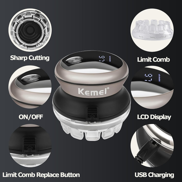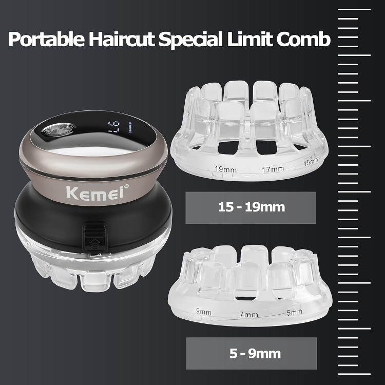 ماشین اصلاح موی حرفهای KEMEI برای آقایان، اصلاح موی دایرهای اتوماتیک، کیت اصلاح موی بیسیم با صفحه نمایش LED، نقرهای KM-887