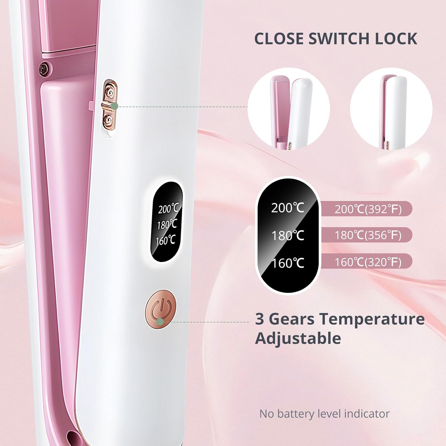 ⚠️【نکته استفاده حرفهای و نکته مهم】برای نتایج بهینه، لطفاً توجه داشته باشید: چراغ چشمکزن نشان میدهد که چرخه گرمایش در حال انجام است. هنگامی که به یک چراغ ثابت تغییر میکند، صافکننده موی بیسیم قابل شارژ به دمای انتخابی شما رسیده و آماده استفاده است. توصیه میکنیم قبل از اولین استفاده برای حالت دادن طولانی مدت، دستگاه را کاملاً شارژ کنید، زیرا نشانگر دقیق میزان باتری در بستهبندی موجود نیست.