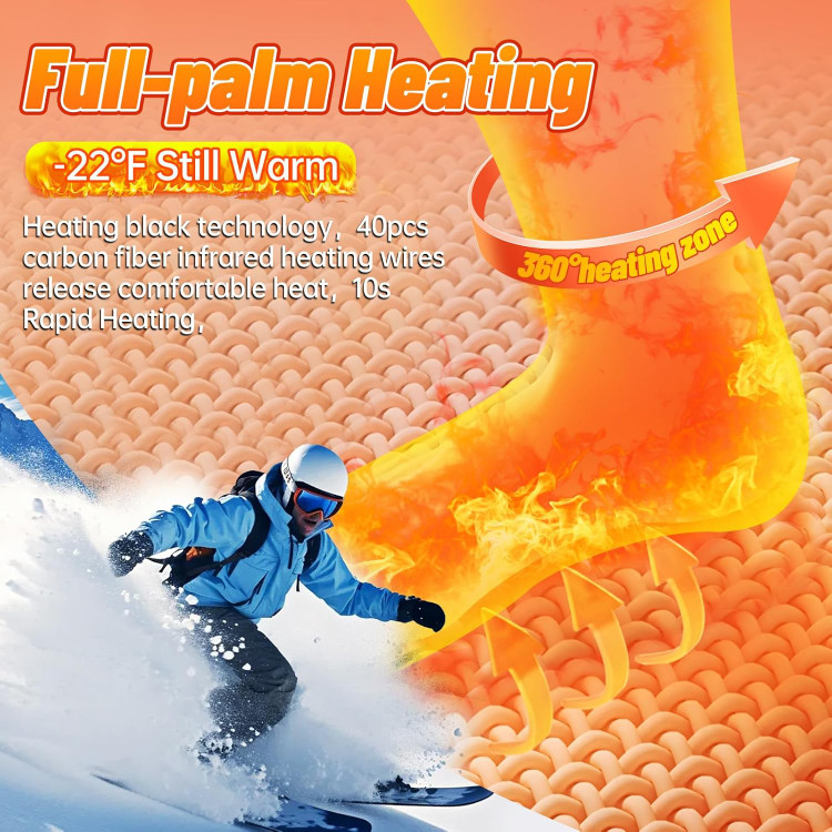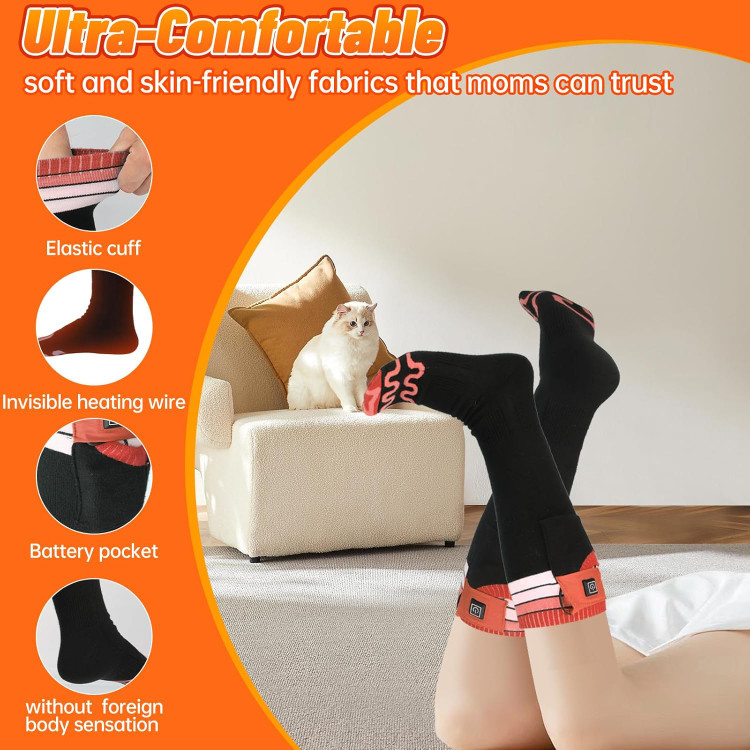 جوراب گرم شونده مردانه زنانه 7.4 ولت 22.2 وات ساعت، 2 عدد باتری 3000 میلی آمپر ساعت قابل شارژ تا 17 ساعت (نارنجی، سایز بزرگ)