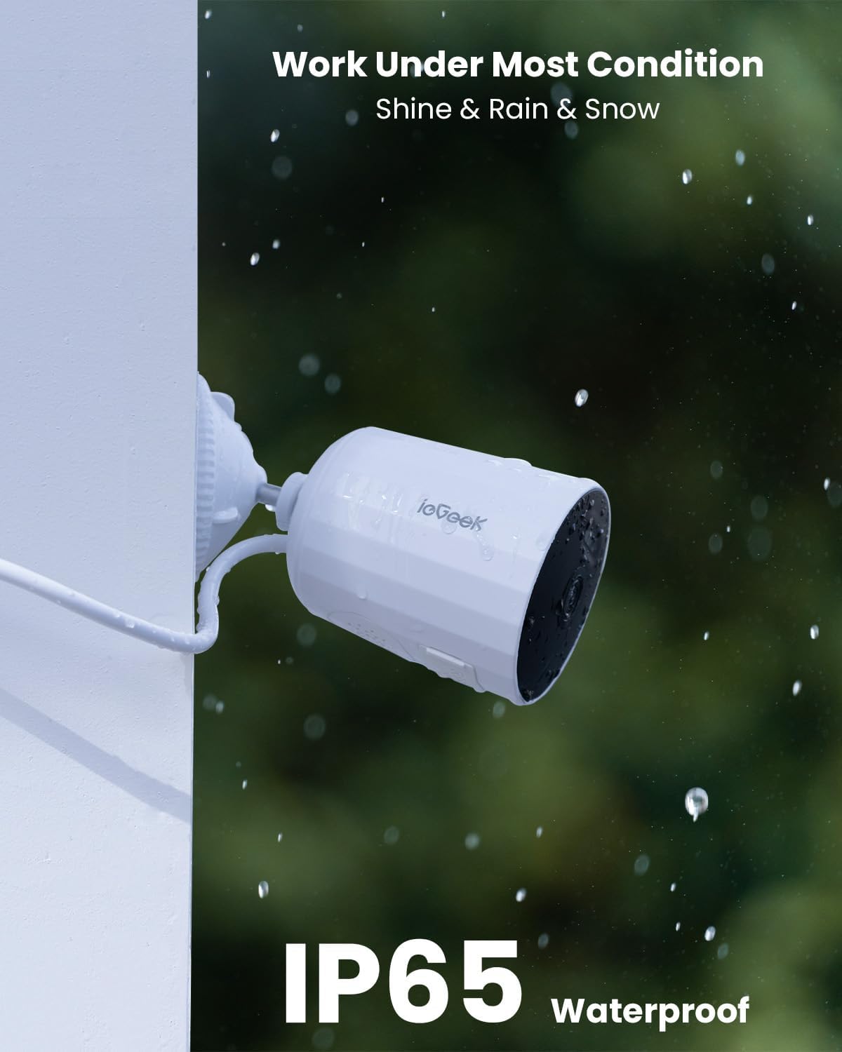 ieGeek wired security cameras perform financial-grade encryption on video data to protect your privacy. Supports Memory card (not included, up to 128GB) which needs no subscription fee.