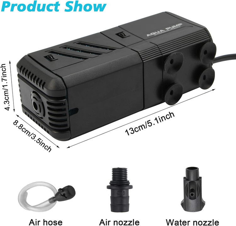🐠[فیلتر آب آکواریوم ۴ کاره]: این فیلتر آکواریوم ۴ عملکرد دارد: پمپاژ، فیلتر کردن، اکسیژنرسانی و ایجاد موج. میتوان از آن به عنوان پمپ اکسیژن آکواریوم، پمپ آب، پمپ فیلتر و تمیزکننده به طور همزمان استفاده کرد. به ماهیها شادی و نشاط اضافه کنید.