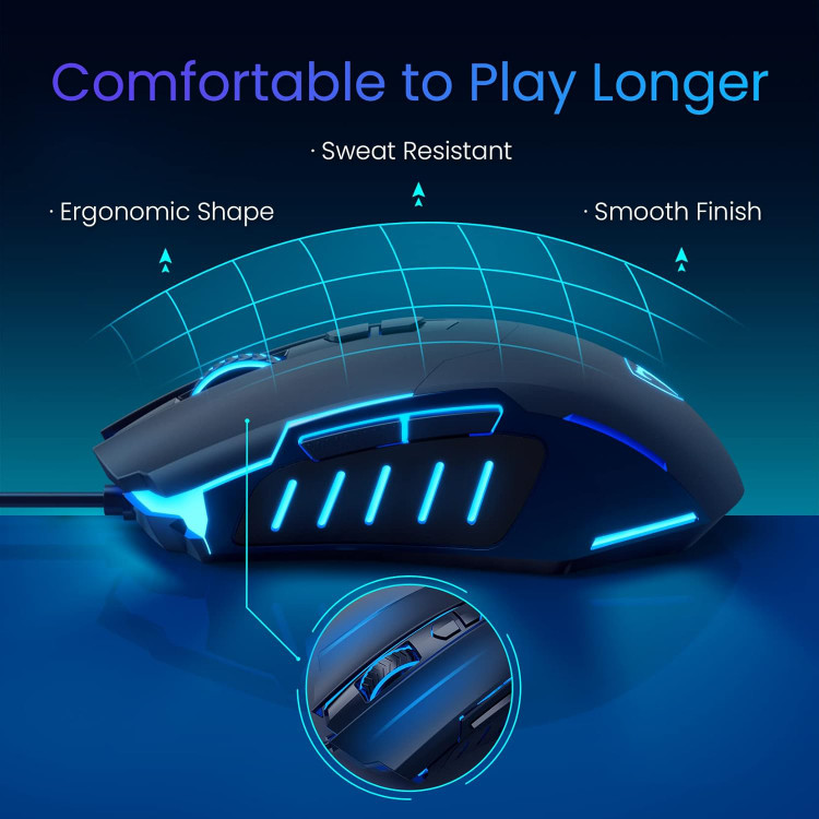 موس بازی سیمی PicTek T7با نور پس زمینه، 7 دکمه، 5 تنظیمات DPI تا 7200 DPI ماوس کامپیوتر USB USB برای کامپیوتر لپ تاپ کامپیوتر Mac Windows-Black