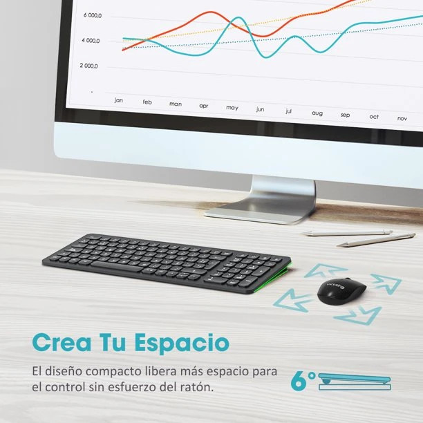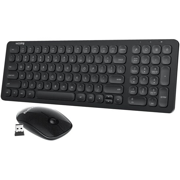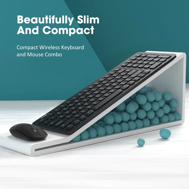 1. طراحی فوق العاده ظریف و جمع و جور. صفحهکلید VicTsing که کوچکتر از اندازه کامل است، اما مجهز به عملکرد کامل است، فضای بیشتری را برای محل کار شما آزاد میکند و اجازه حرکت آزادتر ماوس را میدهد. مجموعه صفحه کلید و ماوس نازک 7 میلی متری میز شما را مرتب و ساده نگه می دارد.