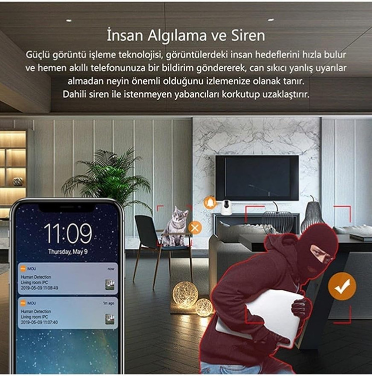 فناوری پردازش تصویر قدرتمند به سرعت اهداف انسانی را در تصاویر پیدا میکند و بلافاصله یک اعلان به تلفن هوشمند شما ارسال میکند و به شما این امکان را میدهد تا بدون دریافت هشدارهای نادرست آزاردهنده موارد مهم را کنترل کنید. با آژیر داخلی غریبههای ناخواسته را بترسانید.