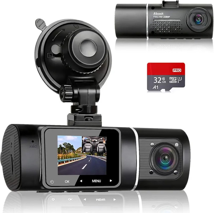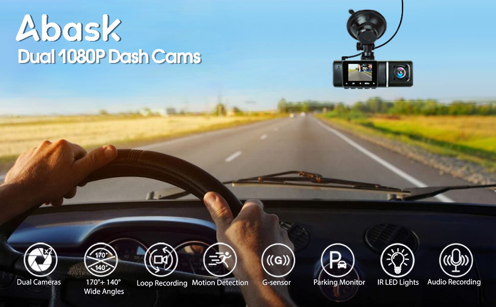 🚘[Dual Dash Cam Front and Inside] The Abask dual dash camera for cars is equipped with 1080P resolution front camera and 1080P Inside of the car.. The car dashboard camera with Wide Dynamic Range offers you the excellent footage. Wide angle design: front camera (170°) and rear (140°) camera, giving a far broader view of the front of your car and road ahead and help eliminate the binds spots of your version.