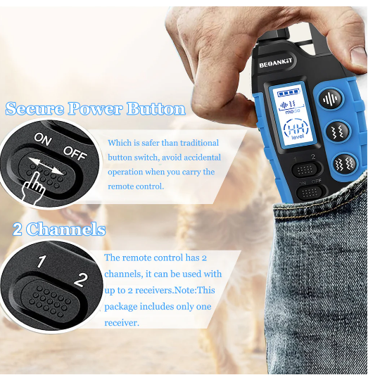 Parameter memory: 2 channel modes that can be switched - H1, H2. The training collar has memory function for settings, no need to reset every time.