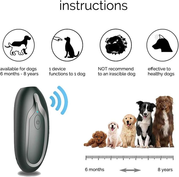 【نکات دستورالعمل】لطفاً درک کنید، دستگاه آموزش سگ ممکن است برای سگهایی با مشکلات شنوایی موثر نباشد. دستگاههای کنترل پارس سگ ما برای اکثر سگهای ۶ ماهه به بالا مناسب است. این برای اکثر نژادهای سگ مناسب است!