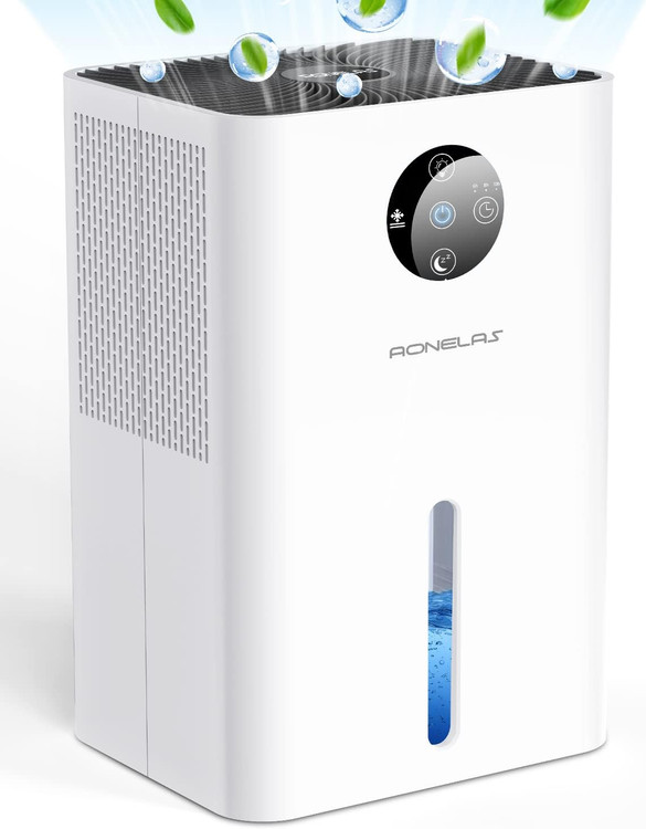 رطوبت گیر برای خانه، لباس خشک کن AONELAS 1.8 لیتری با 7 رنگ سبک و یخ زدایی خودکار، مدل ds01 سفید