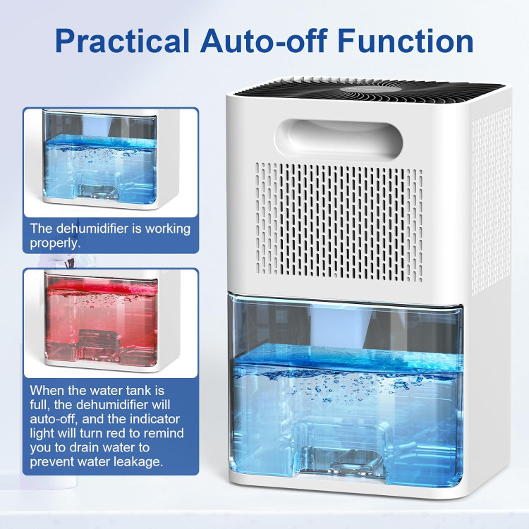- Take out the water tank when the dehumidifier running, the dehumidifier will stop working and the water tank light will turn red. After reinstalling the water tank, the light restores, the dehumidifier will work normally again.