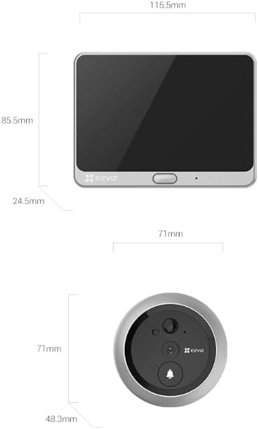 دوربین چشمی بیننده درب ویدیویی EZVIZ DP2C 1080p با صفحه نمایش رنگی 4.3 اینچی، زنگ داخلی، باتری قابل شارژ، مشاهده برنامه، صدای دو طرفه، تشخیص حرکت PIR، محفظه فلزی، Cloud/SD