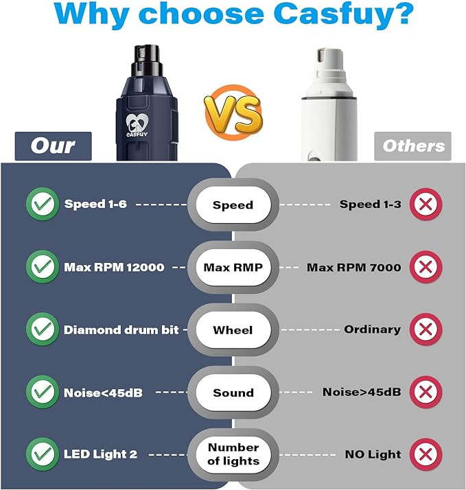 Casfuy Claw Grinder for Dogs provides a soft, smooth and painless way to cut and care for your dog's nails quickly and easily and reduce the risk of overfolding. Give your dog healthier paws with better comfort.
