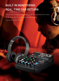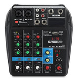 This Sound Mixer has a multi functional 4-channel mixer with one-way recording and two-way recording, which can meet the needs of users' home music production network live broadcast, K song cover and other needs. The mixer is equipped with input gain and high, medium and low adjustment, built-in 48V phantom power for condenser microphones, direct power supply, high-definition input port, MP3 player, Bluetooth receiver, with a connected sound card.
